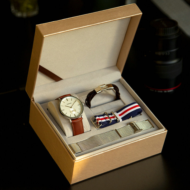 TIME100『一表三戴系列』石英钢带男表礼盒套装